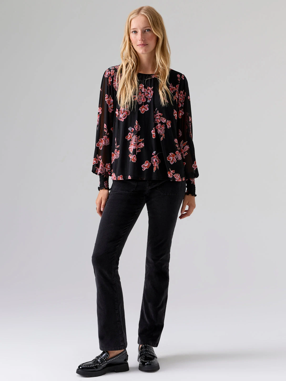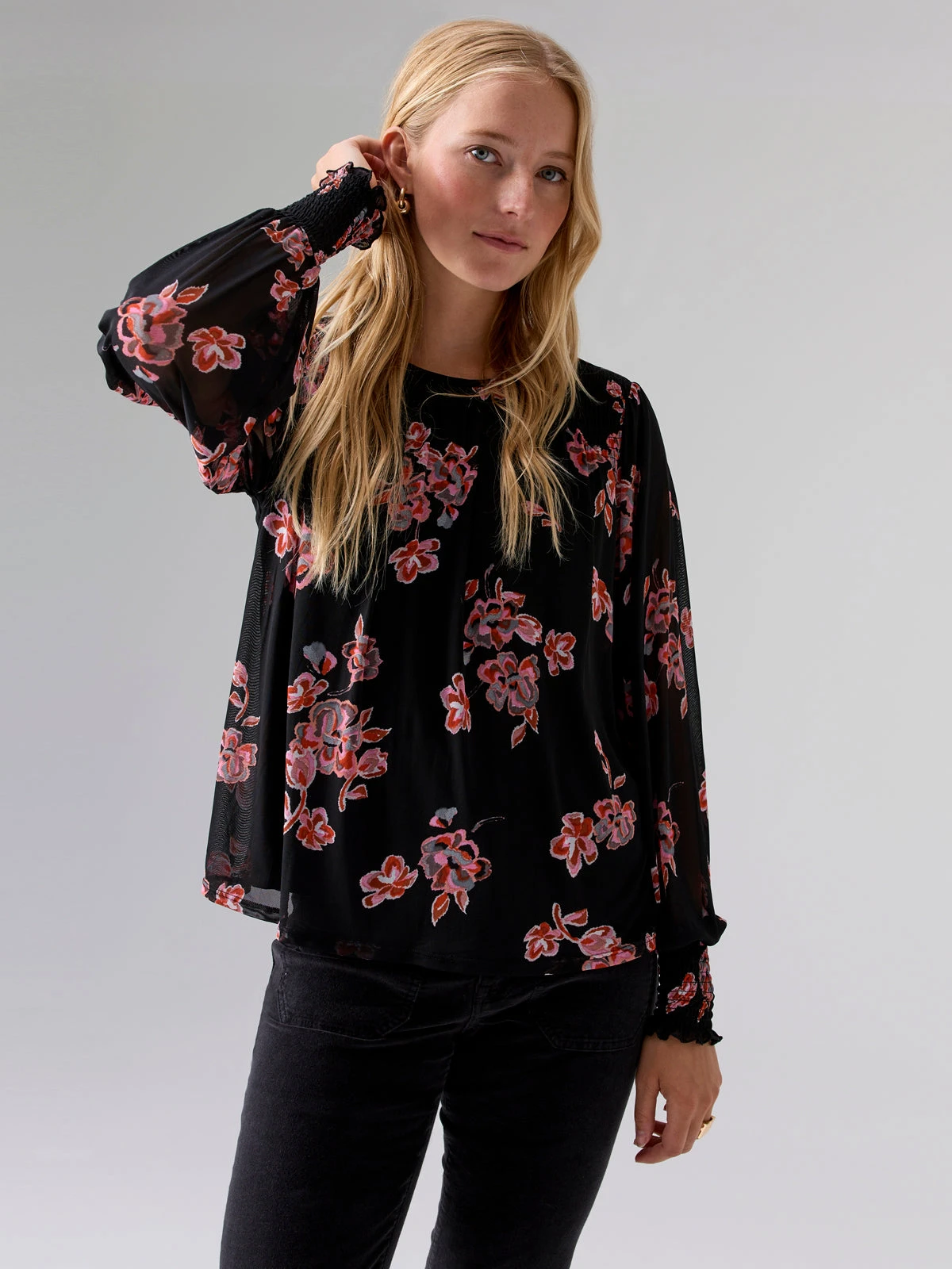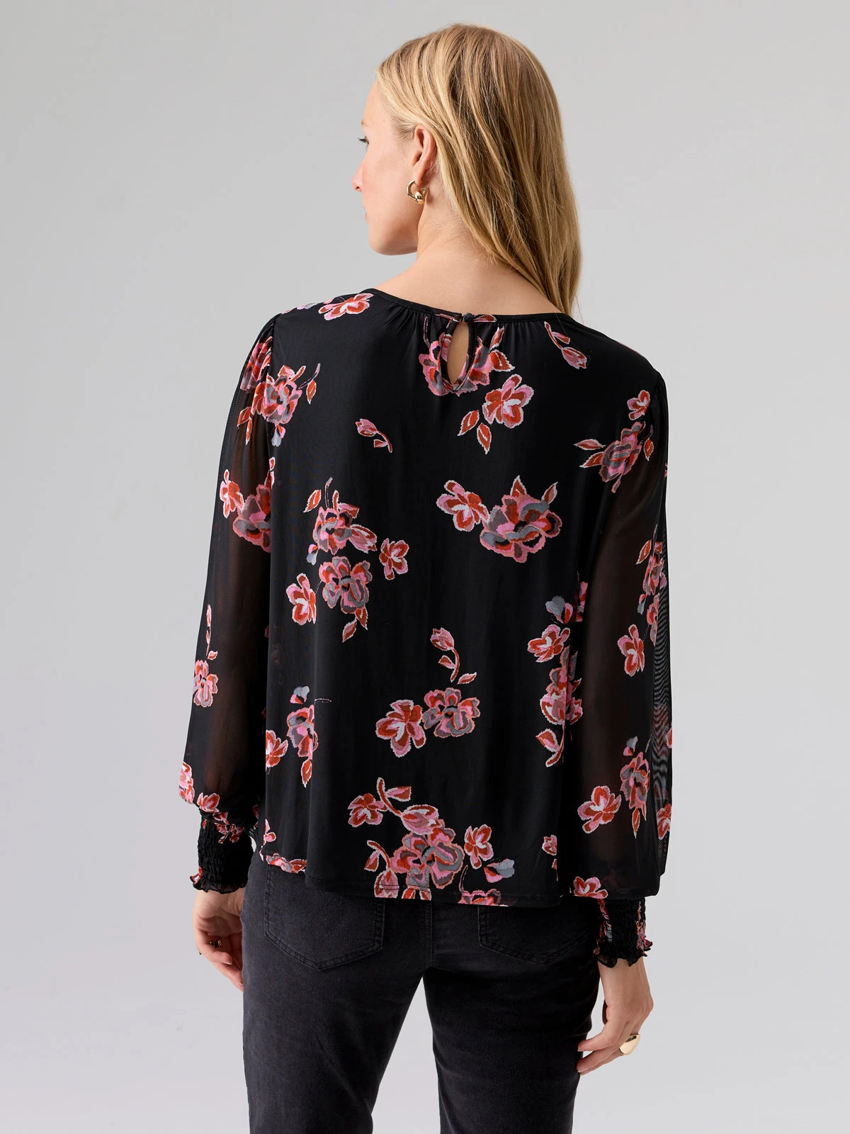 Crewneck Long Sleeve Top with Mesh Sleeves