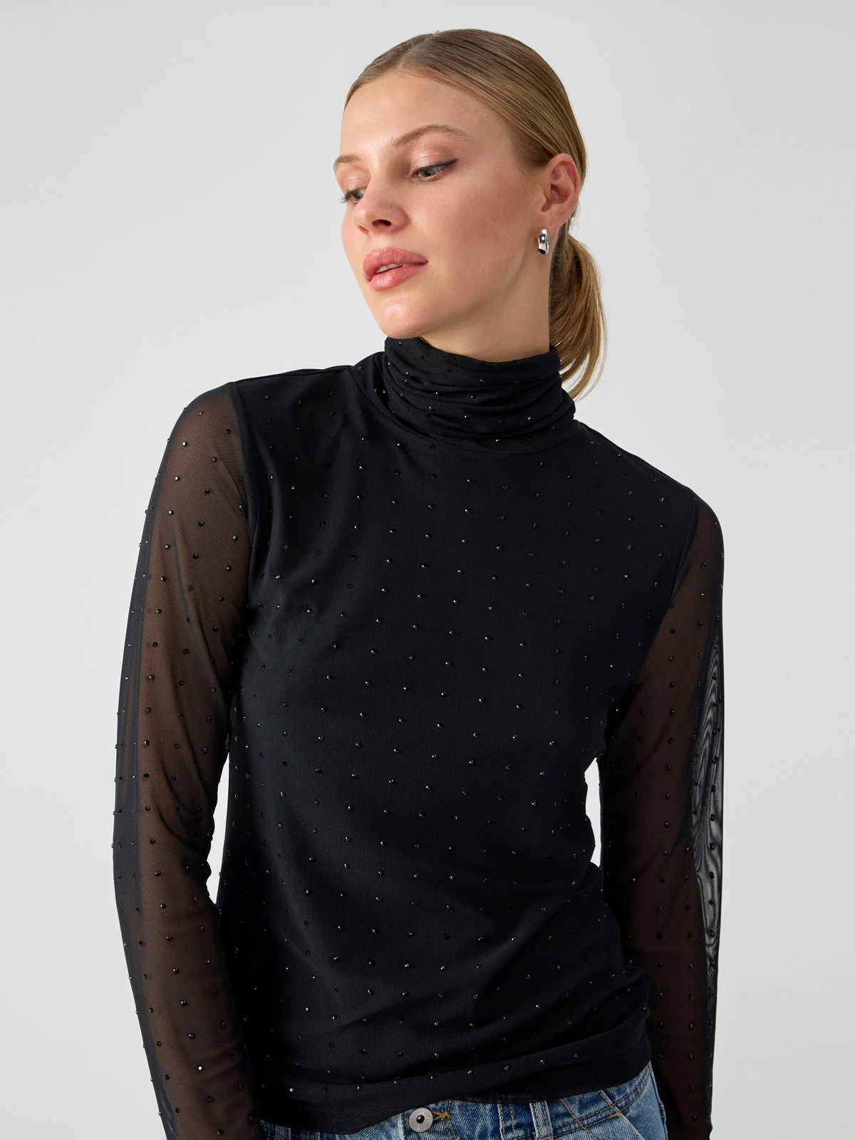 Long Sleeve Turtleneck Mesh Top