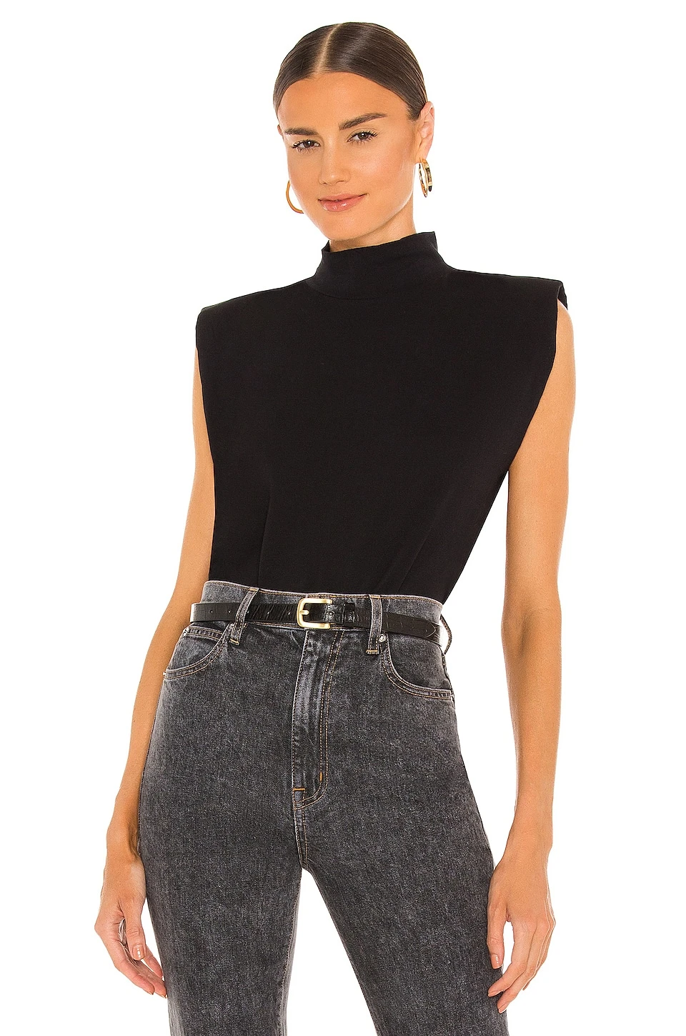 Sanctuary Mock Neck Shoulder Pad Tee Black