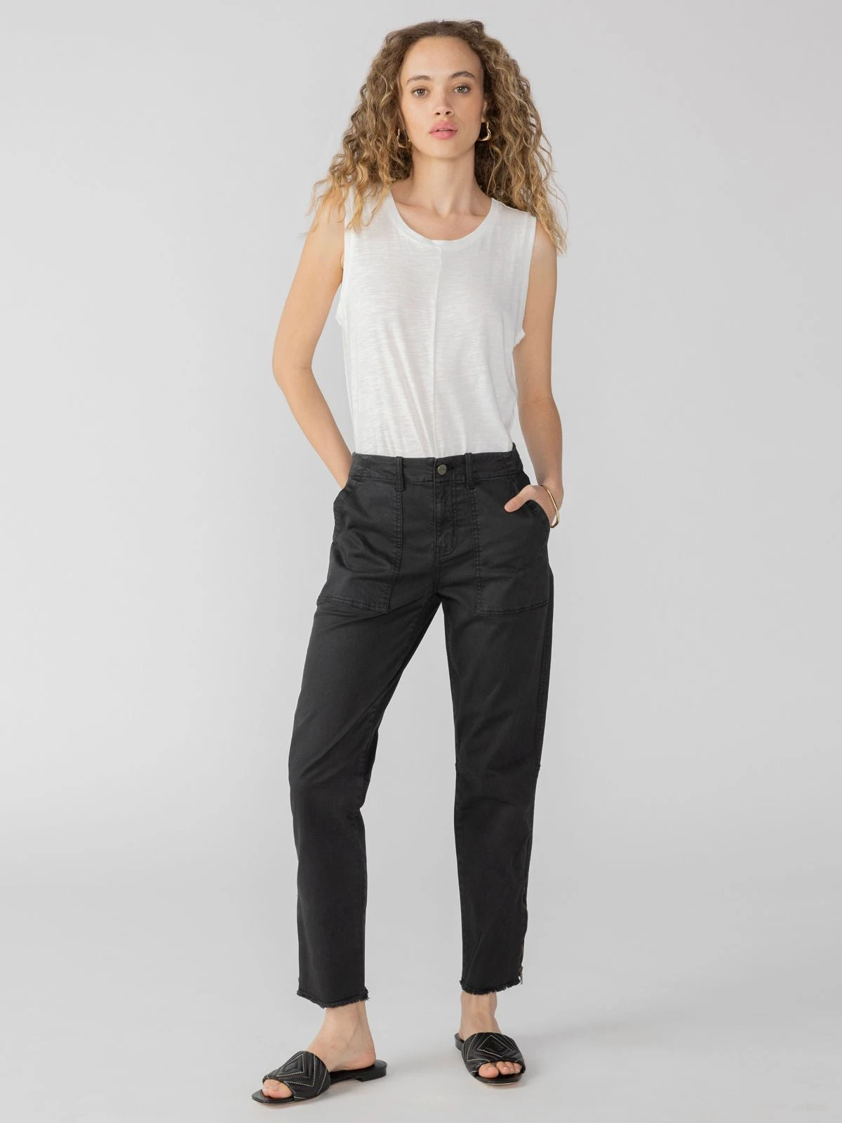Meet your new warm-weather staple. Lightweight cotton slub shapes this loose-fitted, sleeveless tank. A basic crew neck ends at a twist front hem for a playful touch. Finish the look with your go-to denim cut-offs and colorful sandals.